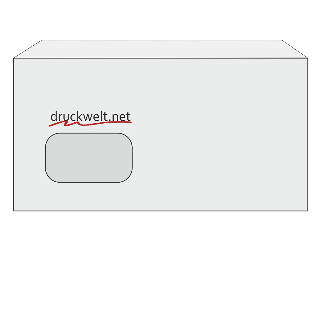 - Druckoptionen: Briefhüllen DIN Lang haftklebend 4/0 (außen 4-farbig, innen unbedruckt) bzw. 4/4 fbg (beidseitig bedruckt).
